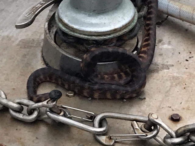 around the chain and made a home in the chain locker”. It was removed rapidly by the Skipper of Sea
